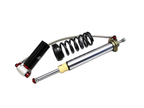Where possible, the housing of the 4-Way shock absorber is made of high-quality aluminium (if desired or required, it can also be made of steel). This guarantees a low weight, maximum strength and optimal cooling. Whilst designing the 4-Way shock absorber, the largest possible diameter is chosen for an even more accurate control of the damping; usually a 52mm housing with 46mm piston. Where possible, Macpherson struts are fitted as upside-downs with a 45mm diameter instead of a thin piston rod that is mounted to the chassis.