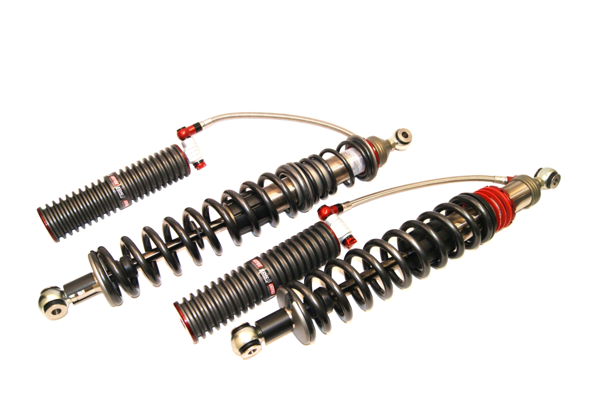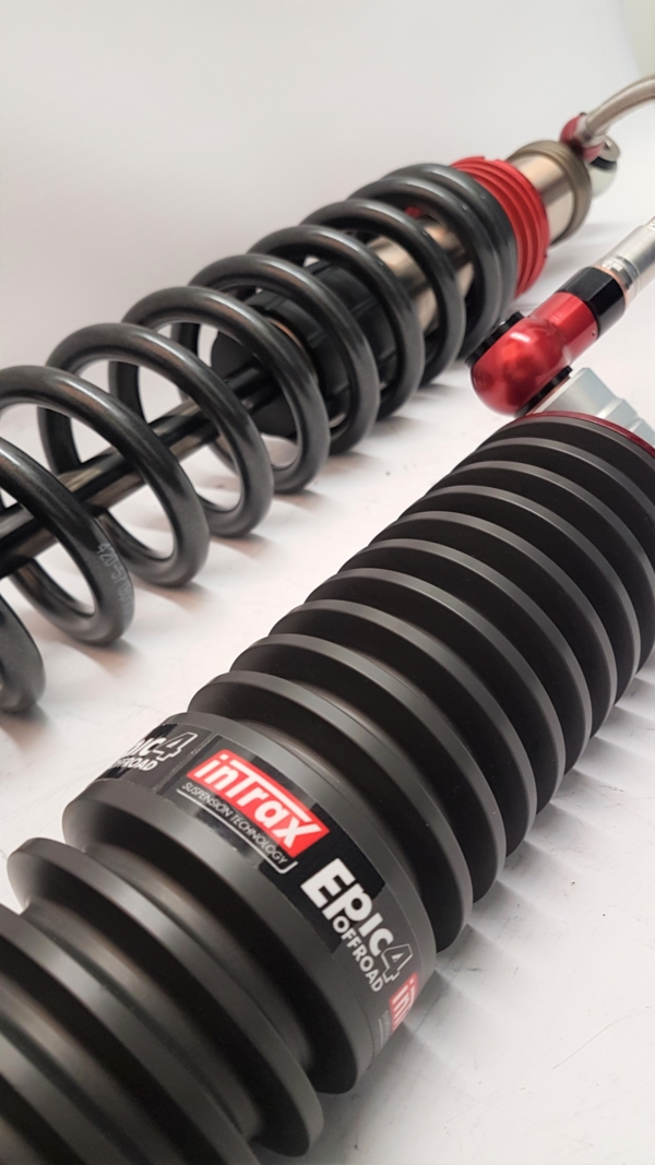 The EPIC shock absorber is specially developed by Intrax as a heavy-duty shock absorber. Because of the extreme diameters, volumes and reservoirs with cooling fins that are used with these shock absorbers, they are extremely suitable for heavy off-road work or other conditions where the shock absorber must be able to handle extreme compression due to high piston speeds. The EPIC shock absorbers are available in the well-known Intrax configurations 1K2, 2K2, 4-Way and can be extended with the optional Black Titan and ARC®.