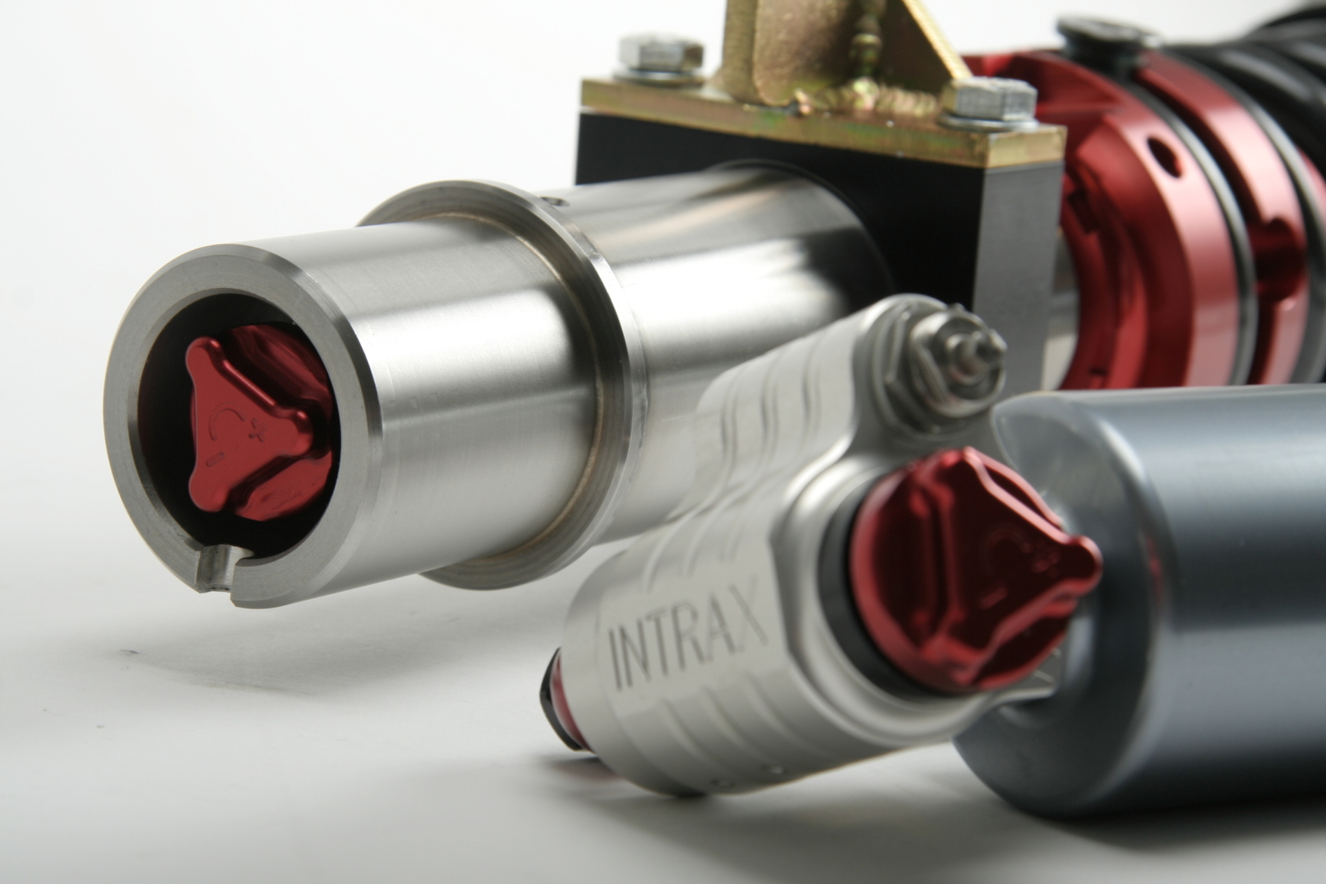 The 4-Way shock absorber is Intrax’ top-rated product. The damping can be adjusted separately for the low-speed bump (inward damping), the high-speed bump and the rebound (outward damping) of the shock absorber. You can also adjust the total compression range. The 4-Way shock absorber is based on the same technology that has helped Schumacher become a World Champion. The interior is more comprehensive than that of all other Intrax dampers and contains more than 115 precision parts.