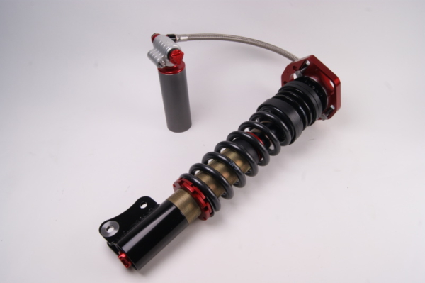 Where possible, the housing of the 4-Way shock absorber is made of high-quality aluminium (if desired or required, it can also be made of steel). This guarantees a low weight, maximum strength and optimal cooling. Whilst designing the 4-Way shock absorber, the largest possible diameter is chosen for an even more accurate control of the damping; usually a 52mm housing with 46mm piston. Where possible, Macpherson struts are fitted as upside-downs with a 45mm diameter instead of a thin piston rod that is mounted to the chassis.
