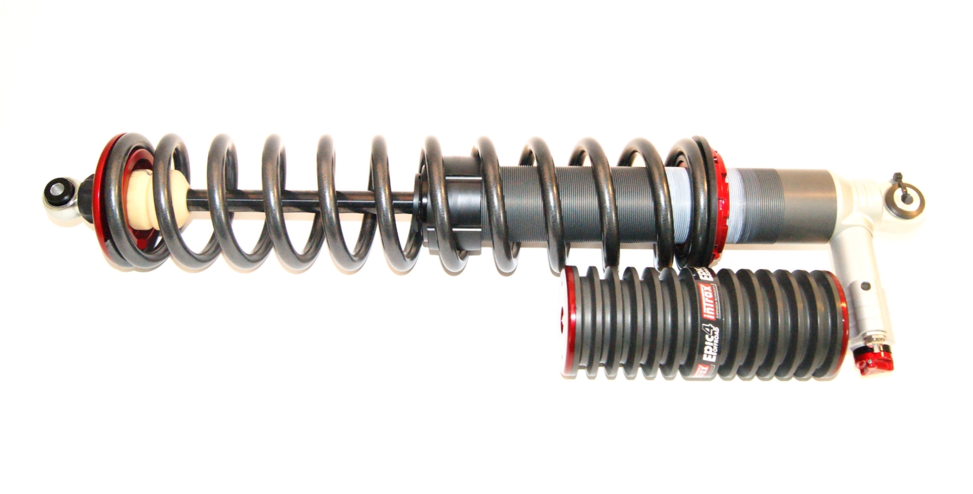 The EPIC shock absorber is specially developed by Intrax as a heavy-duty shock absorber. Because of the extreme diameters, volumes and reservoirs with cooling fins that are used with these shock absorbers, they are extremely suitable for heavy off-road work or other conditions where the shock absorber must be able to handle extreme compression due to high piston speeds. The EPIC shock absorbers are available in the well-known Intrax configurations 1K2, 2K2, 4-Way and can be extended with the optional Black Titan and ARC®.